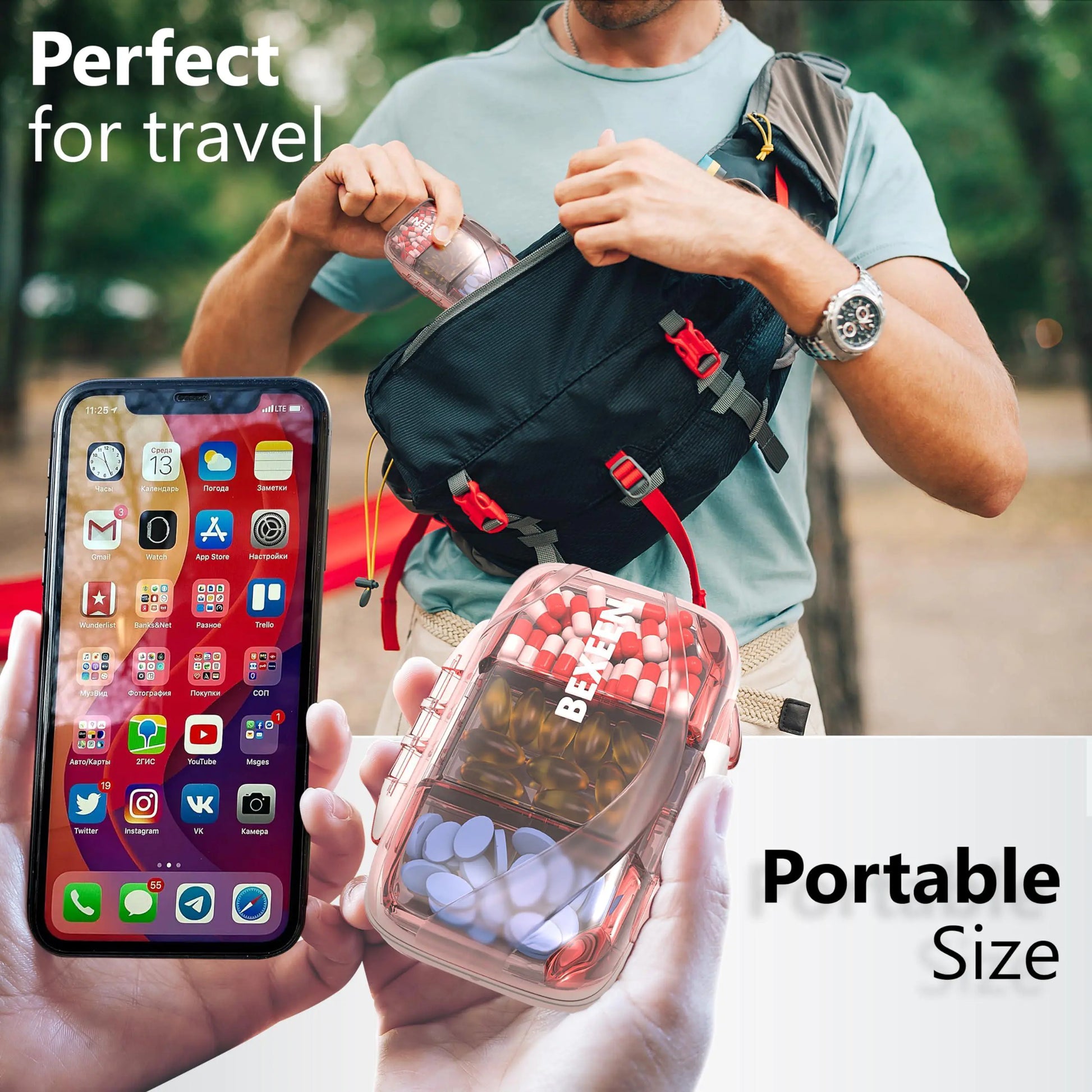 Keep your medications safe, dry, and easily accessible with this Travel Pill Box. Featuring 100% damp-proof, 2-layer protection with a fully sealed gasket, this pill organizer is temperature-resistant and perfect for travel, beach trips, or humid environments.